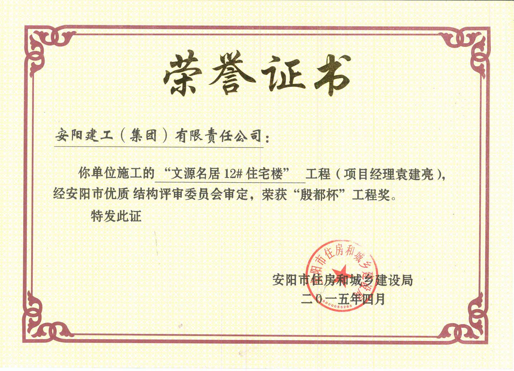 安陽建工(集團(tuán))有限責(zé)任公司的前身是安陽市建筑工程公司,成立于1952年, 2005年改制為民營企業(yè)。六十余年磨礪精兵,譜寫輝煌。現(xiàn)在的建工已發(fā)展成為由20多家分(子)公司組成,集建筑施工、房地產(chǎn)開發(fā)、科研測試、材料供應(yīng)、勞務(wù)管理、電梯安裝、裝飾裝璜、預(yù)制構(gòu)件、商品混凝土、混凝土外加劑、機(jī)電設(shè)備安裝、建筑節(jié)能為一體的現(xiàn)代化集團(tuán)。具有國家一級建筑施工總承包資質(zhì)和市政公用工程總承包一級資質(zhì)...