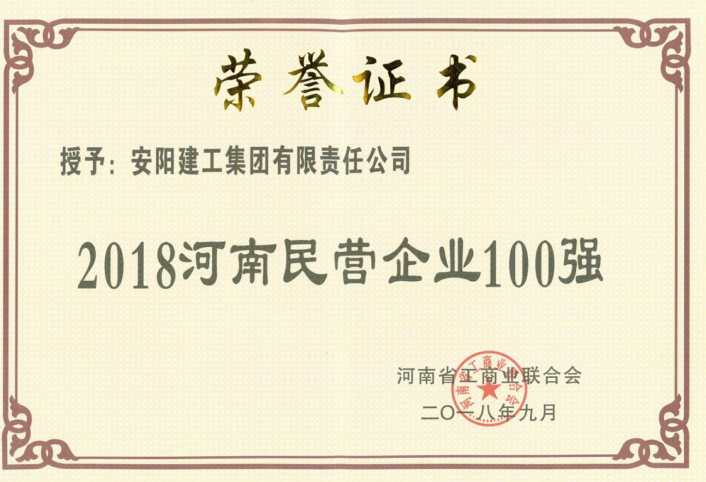 熱烈慶祝我公司榮登河南省民營企業(yè)100強(qiáng)光榮榜
