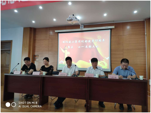 2019年7月6日,安陽建工(集團(tuán))紀(jì)念建黨98周年暨慶“七一”表彰大會在公司四樓會議室隆重召開。公司全體黨員、中層以上領(lǐng)導(dǎo)干部、分(子)公司班子成員共計90余人參加了會議。公司黨委成員在主席臺就坐,公司黨委副書記馬松林主持會議。