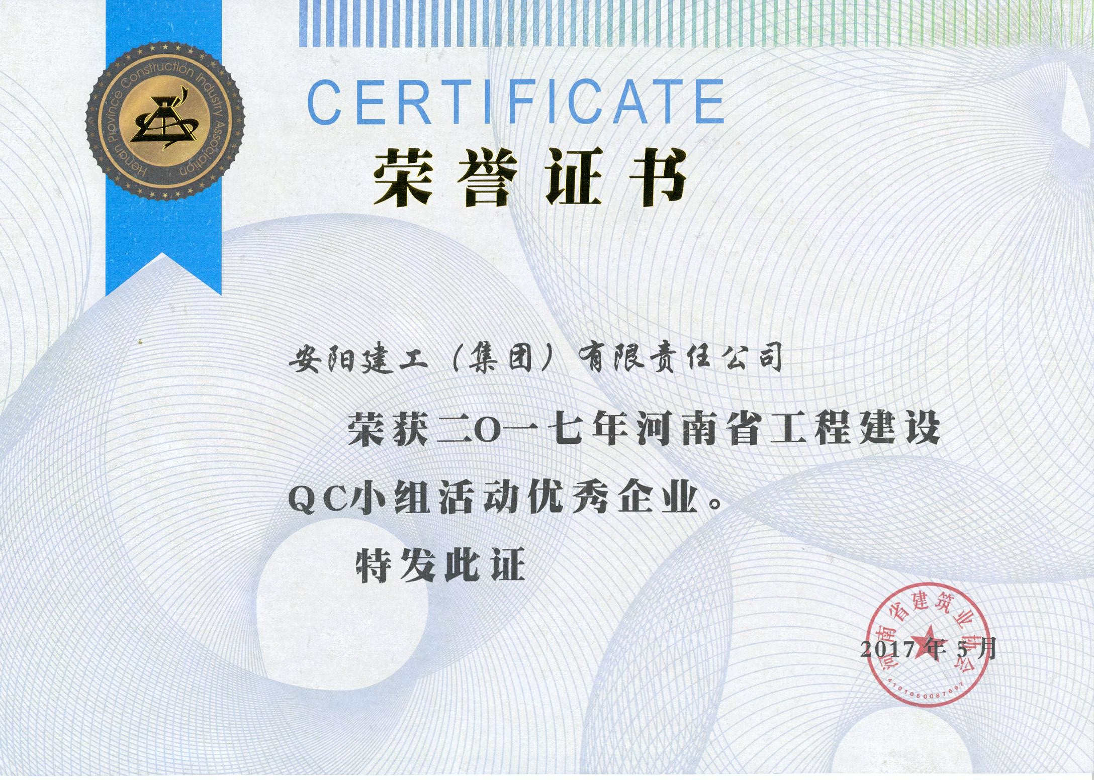 我公司榮獲2017年河南省工程建設QC小組活動優秀企業