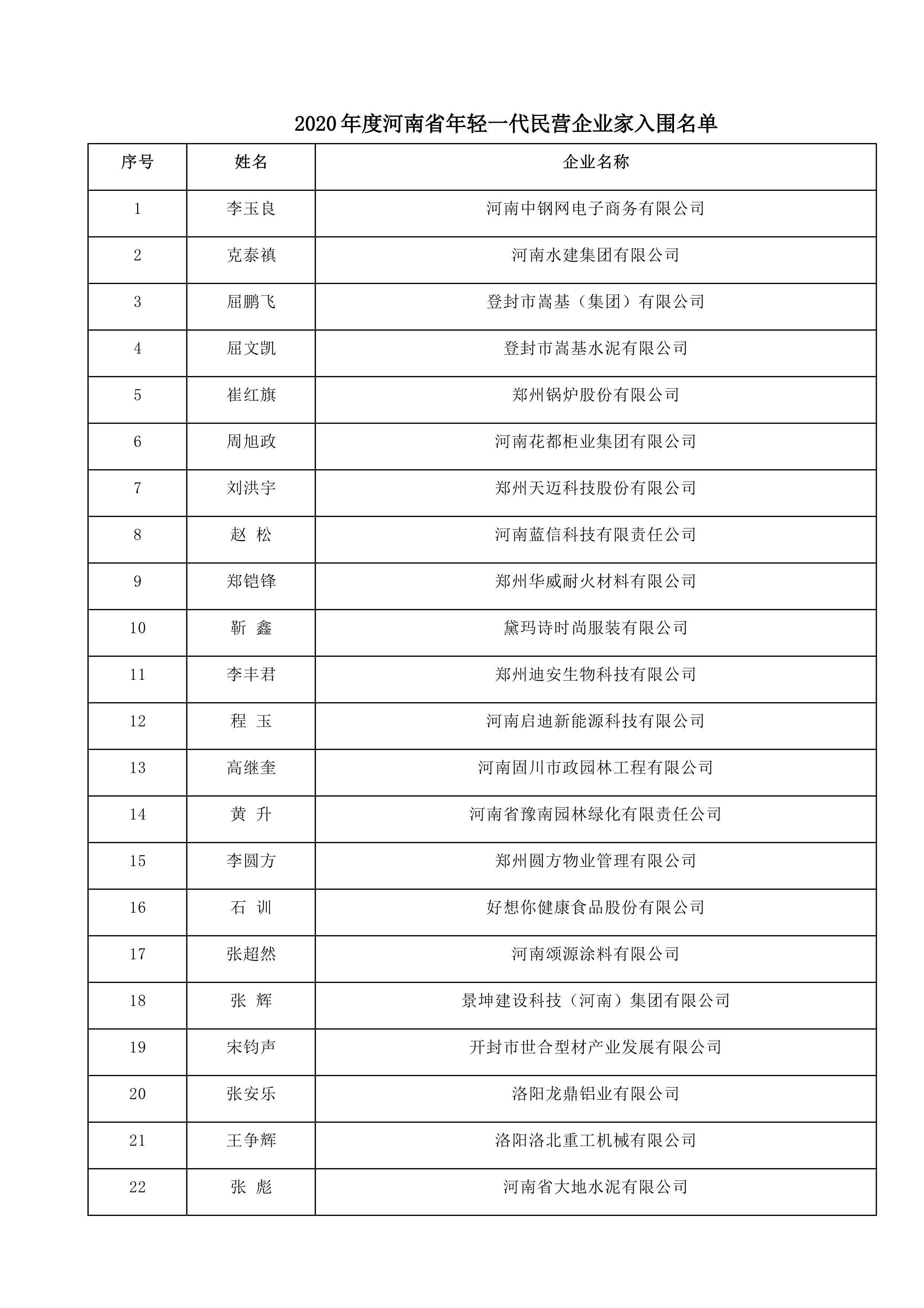 附件:2020年度河南省年輕一代民營企業家入圍名單