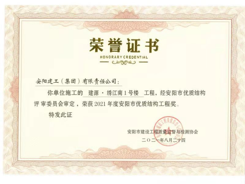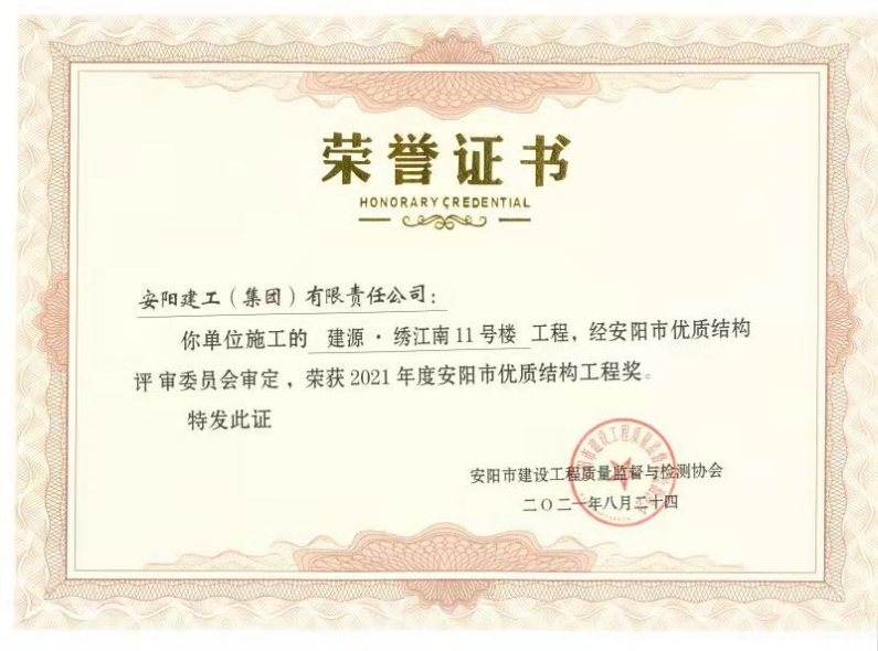 建源·繡江南項(xiàng)目喜獲安陽(yáng)市優(yōu)質(zhì)結(jié)構(gòu)工程獎(jiǎng)