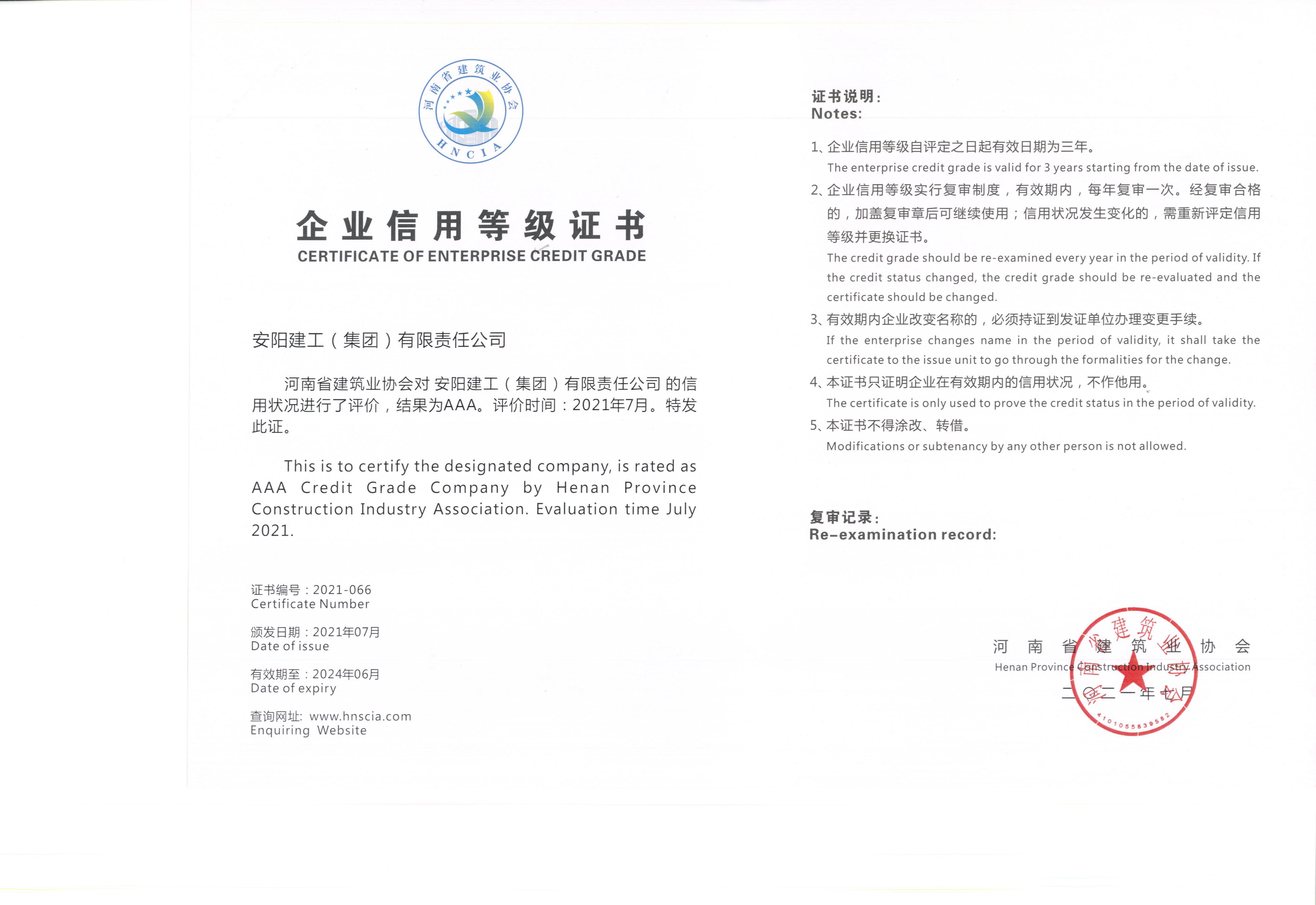 繼10月12日,在“2021誠信建設經驗交流會”上,河南省建筑業協會為我集團公司頒發“2021年度河南省建筑業AAA級信用企業”榮譽證書后,10月22日,從中國建筑業協會再傳捷報,公司榮獲中國建筑業“AAA級信用企業”榮譽稱號。